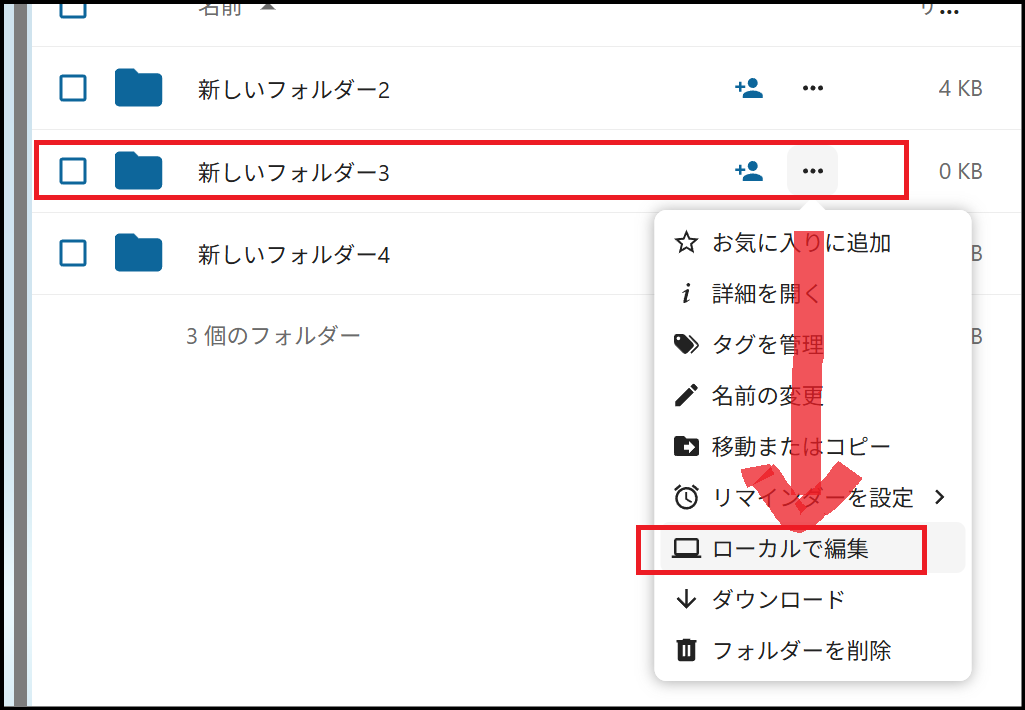 こうすれば簡単に解決できます。該当フォルダーの「三点リーダー」をクリックして、